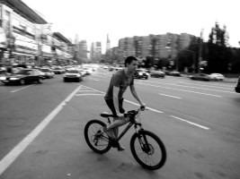 Велосипедирующие вечером в Москве (только начало)